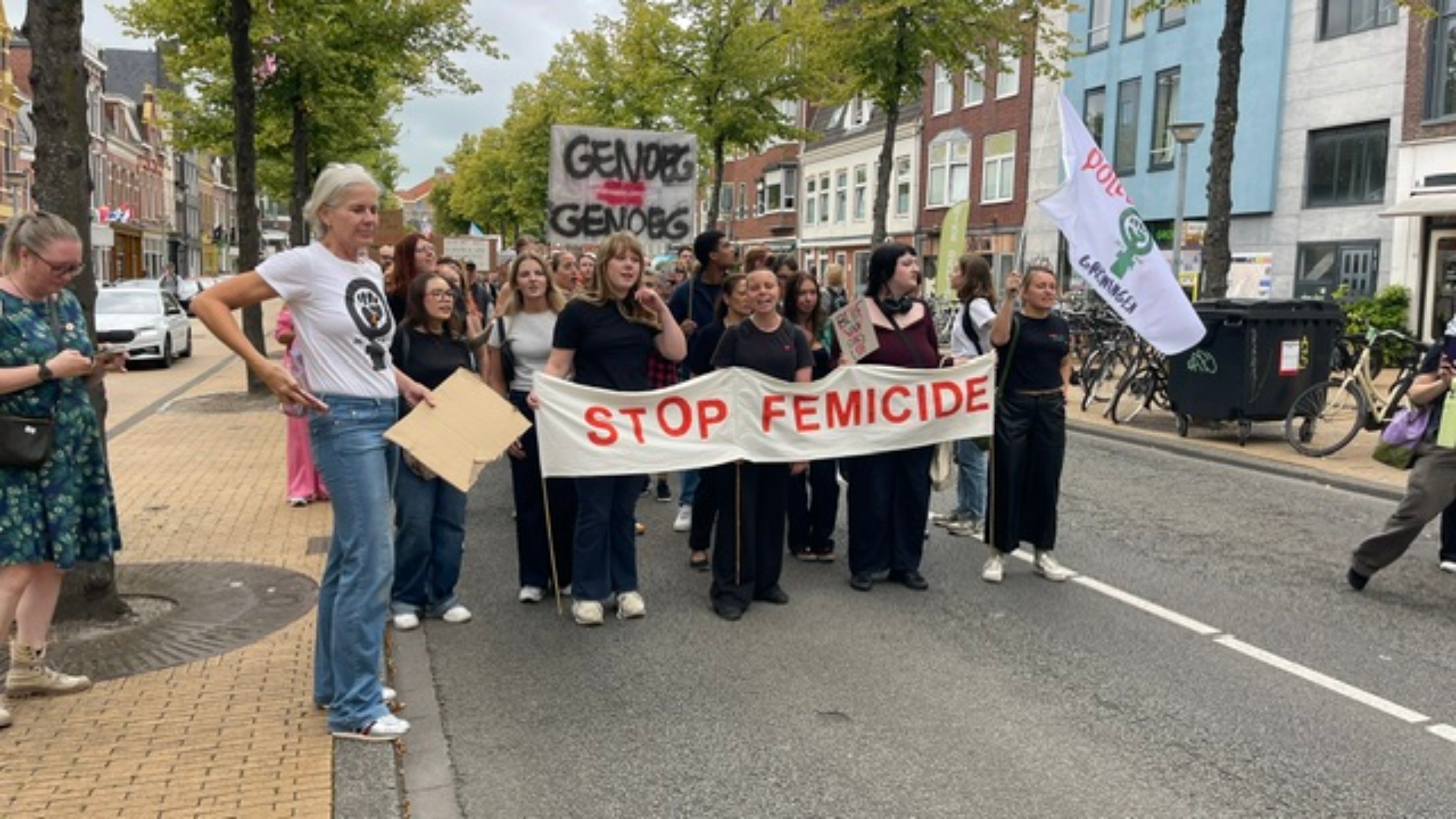 Mars tegen femicide trekt door binnenstad van Groningen: 'Stop vrouwenmoord!'