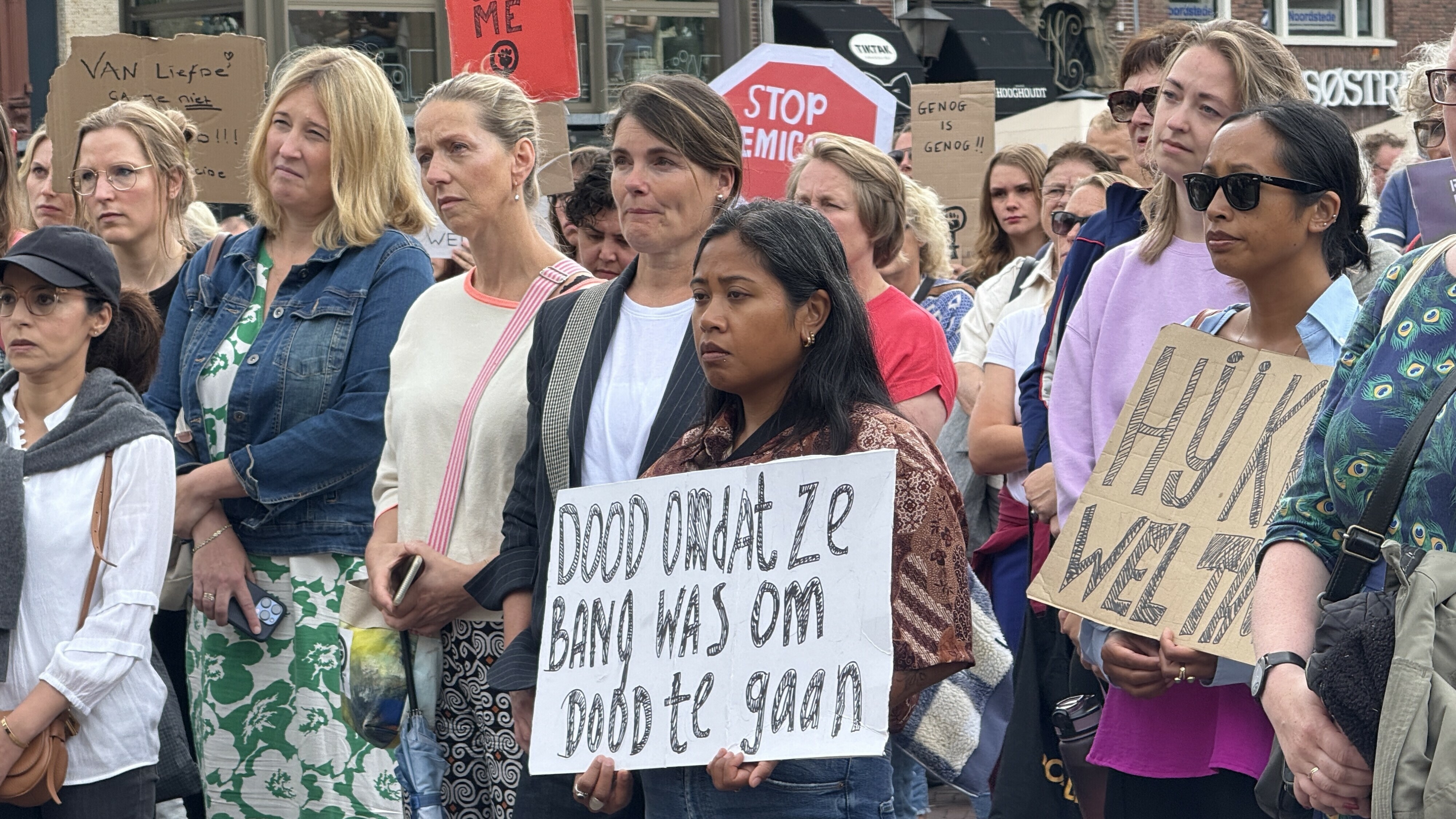 Protestmars in Groningen tegen femicide: 'Blief mit dien klaauwen van vraauwen'