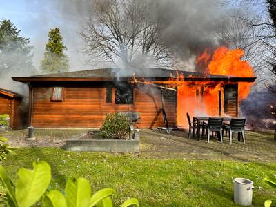zondag 13 februari 2022, 14:17 uurBij een grote uitslaande brand op een vakantiepark in Harderwijk is vanmiddag een chalet volledig afgebrand. De brand woedde op bungalowpark Verscholen Dorp aan de Boslaan. Van het houten huisje is niet veel over, omliggende chalets zijn gered. Bij de brand raakte niemand gewond.