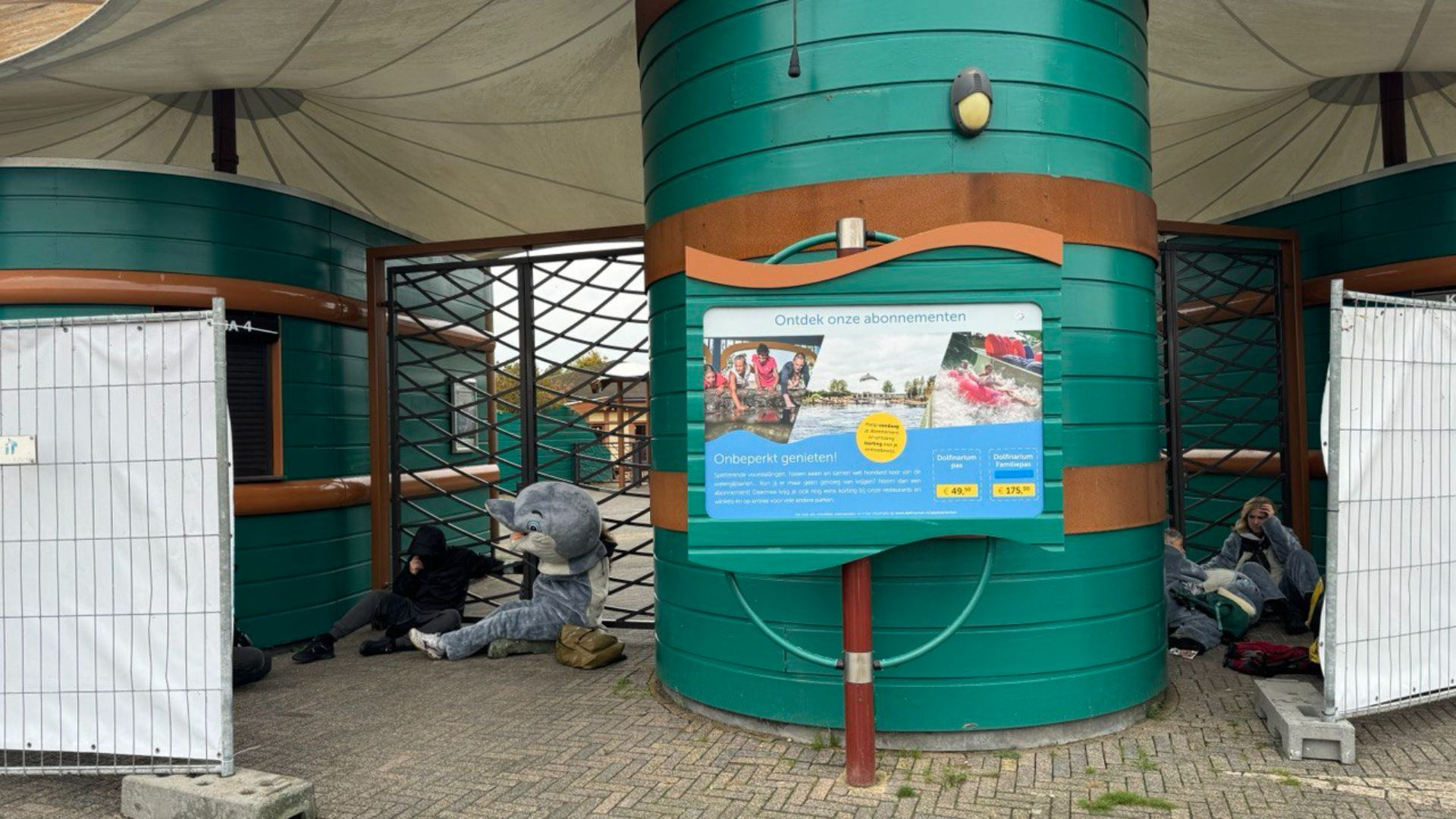 Dierenactivisten blokkeren ingangen van het Dolfinarium