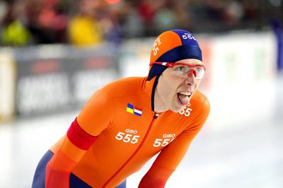 Imponerende Patrick Roest breekt eigen baanrecord op 5000 meter bij wereldbeker in Thialf