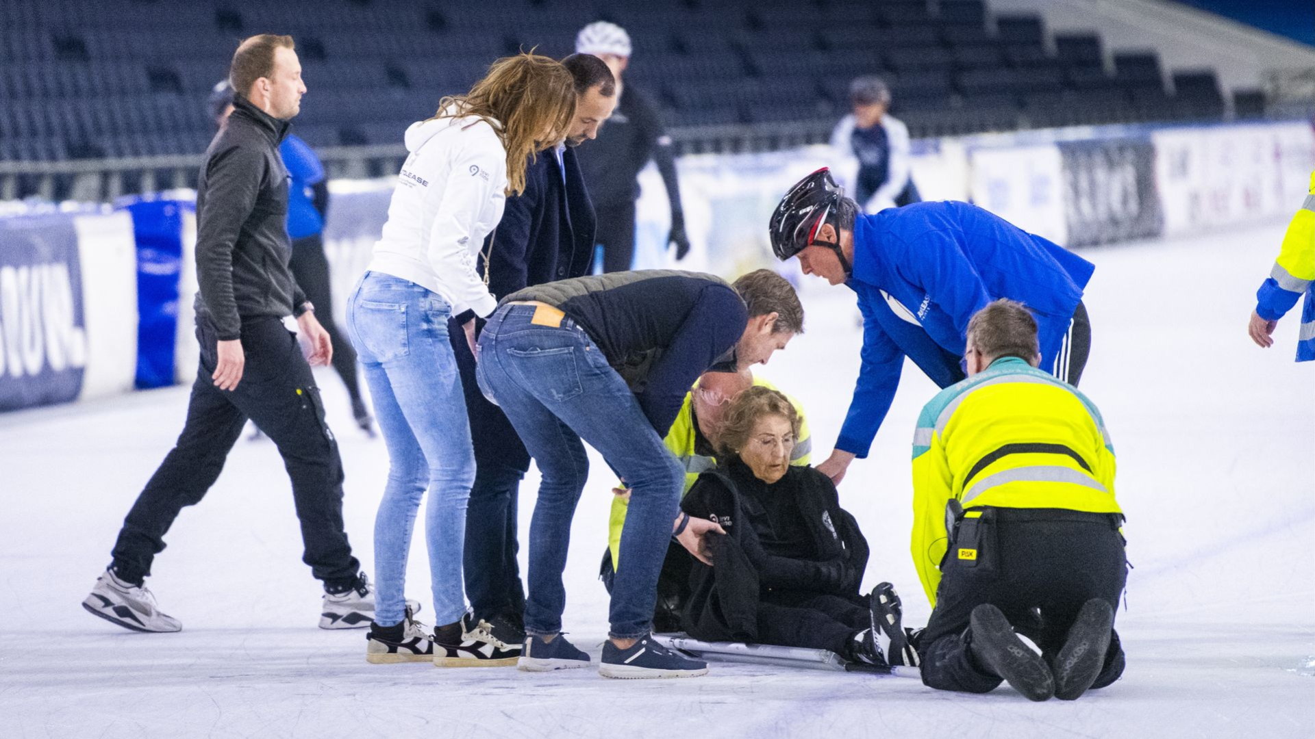 Prinses Margriet naar ziekenhuis na val op ijs in Thialf