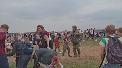 ZIEN | Militair komt tijdens massadropping neer in publiek