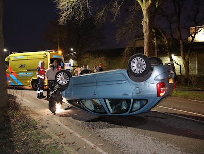 Op de Hoofdstraat in Heijen is vrijdagmiddag een auto op de kop terechtgekomen bij een eenzijdig verkeersongeval. De bestuurder raakte door nog onbekende oorzaak van de weg en botste tegen een boom.