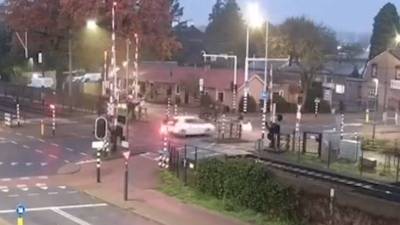 Automobilist wil nog snél spoor oversteken. Daar rijdt Sam (14), die hard tegen het asfalt gaat