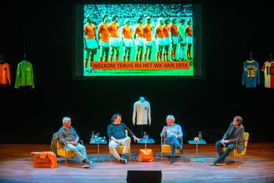 woensdag 27 april 2022, 10:21 uurHet theatercollege over het iconische WK voetbal van 1974 in West-Duitsland krijgt een vervolg. De voorstelling is binnenkort ook te zien in Hoofddorp en Steenwijk. Drie basisspelers van toen, Johnny Rep, Wim Rijsbergen en Willem van Hanegem, blikken onder leiding van presentator Eddy van der Ley terug op het toernooi dat Oranje eeuwige roem opleverde, maar net geen wereldtitel.