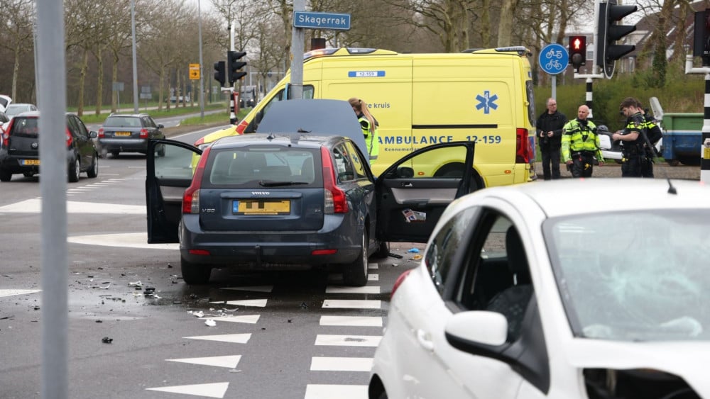 Twee auto’s zijn donderdagochtend met elkaar in botsing gekomen op de kruising van het Skagerrak met de Van Heuven Goedhartlaan in Hoofddorp. Drie personen raakten gewond.