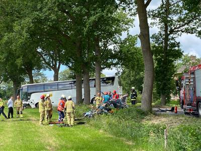Aanrijding touringcar vol ouderen en auto bij Hoogeveen: vrouw zat bekneld