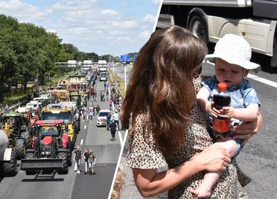 Boeren blokkeren A28: Jong gezin met baby staat twee uur in file