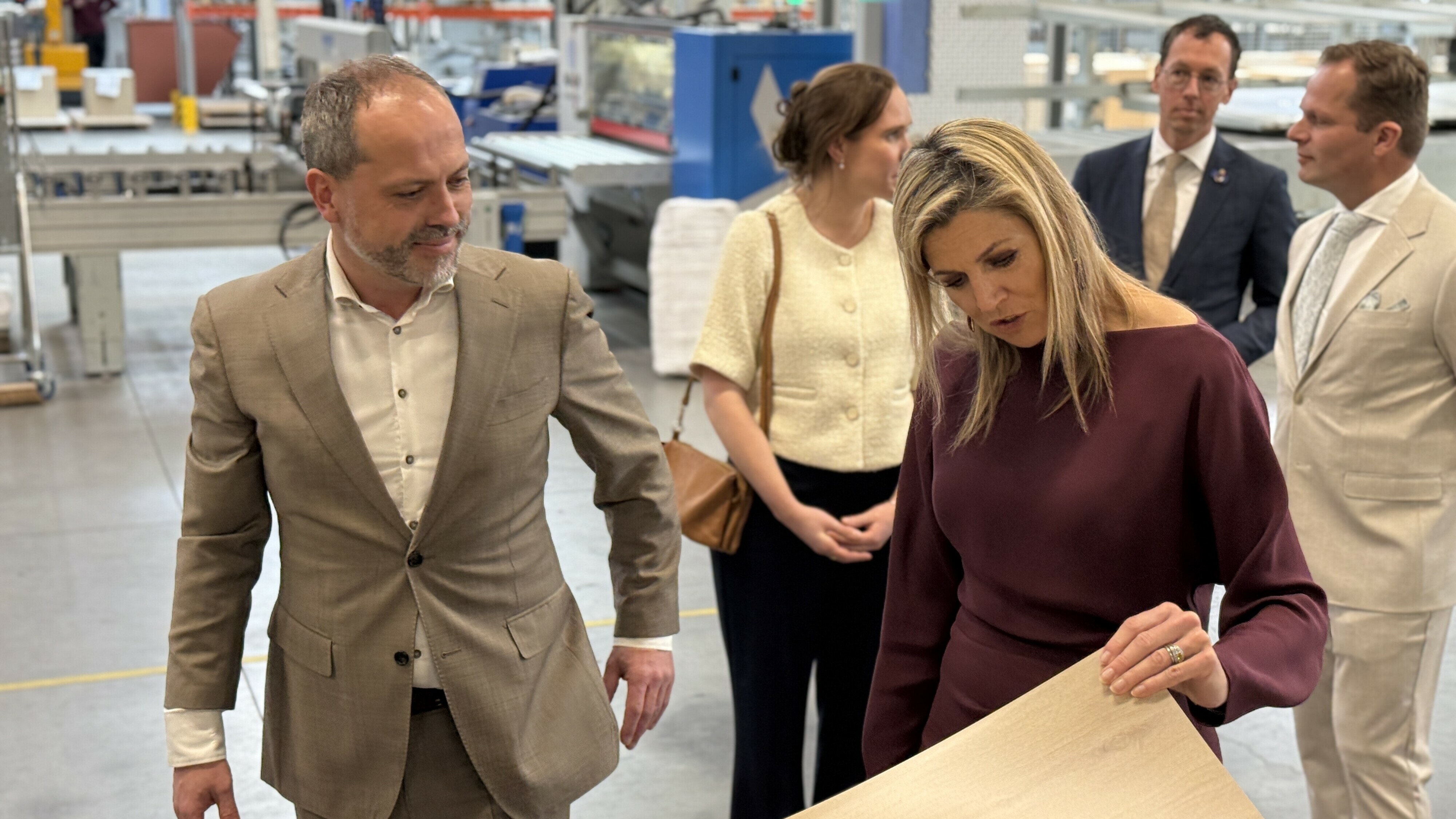 Geen troon, maar bureaustoelen: Koningin Máxima duikt meubelfabriek Hoogeveen in