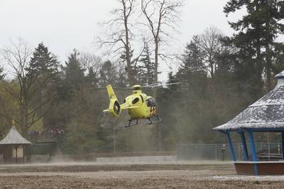 Traumahelikopter landt middenin de Efteling, uitkijktoren Pagode staat even stil