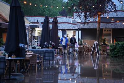 Restaurant staat blank na hevige regenbui, toiletten stroomden over