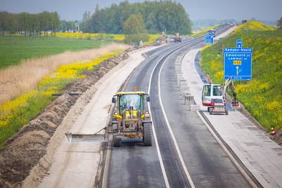 Na twee avonden en een weekend lang werken, is de N50 bij Kampen vanochtend weer open gegaan voor verkeer. De eerste maatregelen zijn inmiddels zichtbaar. Zo is onder meer de berm verhard.