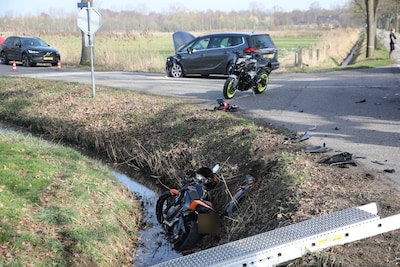 Motorrijder beland in sloot na botsing met auto