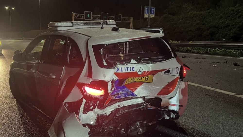 Auto knalt met hoge snelheid tegen politieauto op snelweg