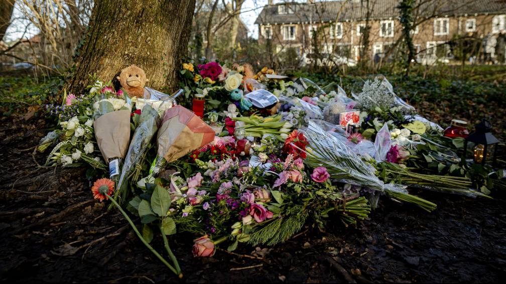 LEIDEN - Zondagavond 2 januari tegen 18.00 uur zijn aan de Melchior Treublaan in Leiden verschillende bloemen en knuffels neergelegd.