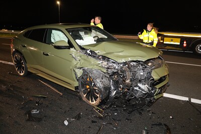 Bij een ongeval met meerdere auto's op de A4 bij Leiden is onder andere een peperdure Lamborghini betrokken. De brokstukken van drie auto's lagen zaterdagavond over de hoofdrijbaan verspreid, die daarom was afgesloten.