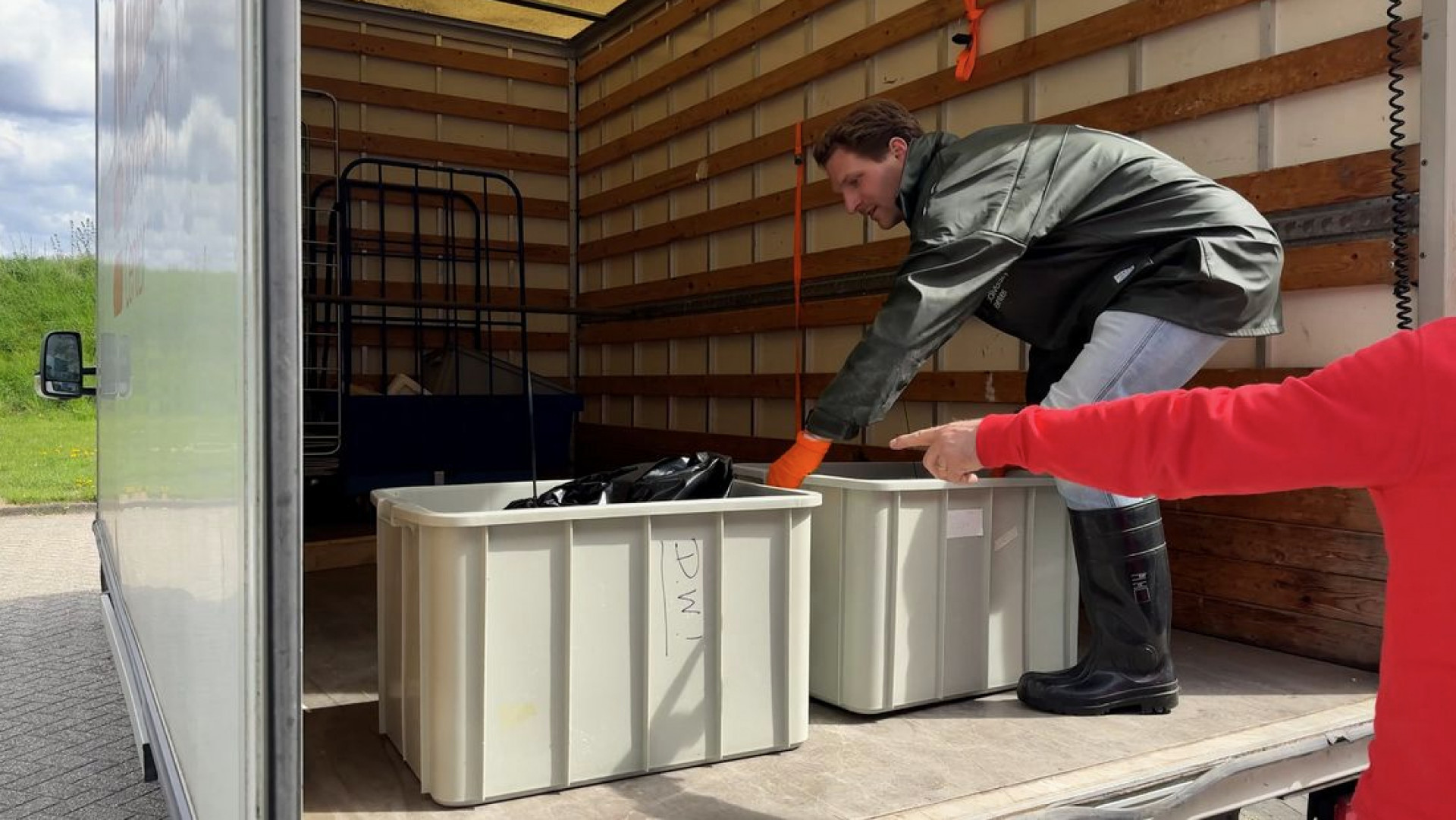 14 april 17:17Bezorgbus Albert Heijn rijdt water in
