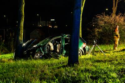 Automobilist rijdt tegen boom op Visarenddreef in Lelystad