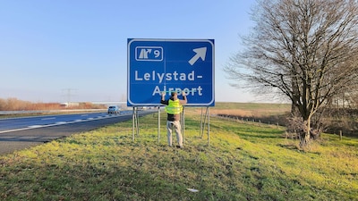 maandag 2 februari 2026, 14:59 uurActievoerders van milieuorganisatie Greenpeace hebben maandagochtend op meerdere plekken letterlijk een streep gezet door Lelystad Airport. Op verkeersborden langs de A6 werd het woord Airport doorgestreept.
