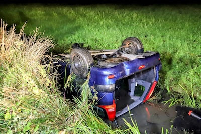 Auto belandt op de kop in sloot in Lienden