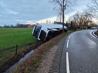 woensdag 14 januari 2026, 09:37 uurEen vrachtwagen is woensdagochtend gekanteld en in de sloot terechtgekomen op de grens van Lievelde en Groenlo. Vlak voor een scherpe bocht op de Eefselerweg ging het mis.