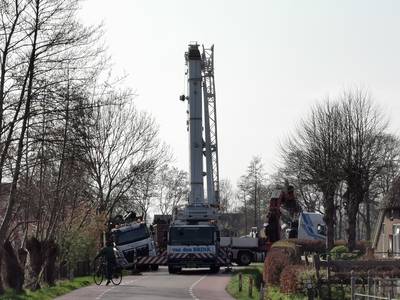 Vrachtwagen komt vast te zitten in greppel in Lunteren: kraanwagen schiet te hulp