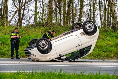 Auto op z’n kop bij ongeluk op N271 bij Malden