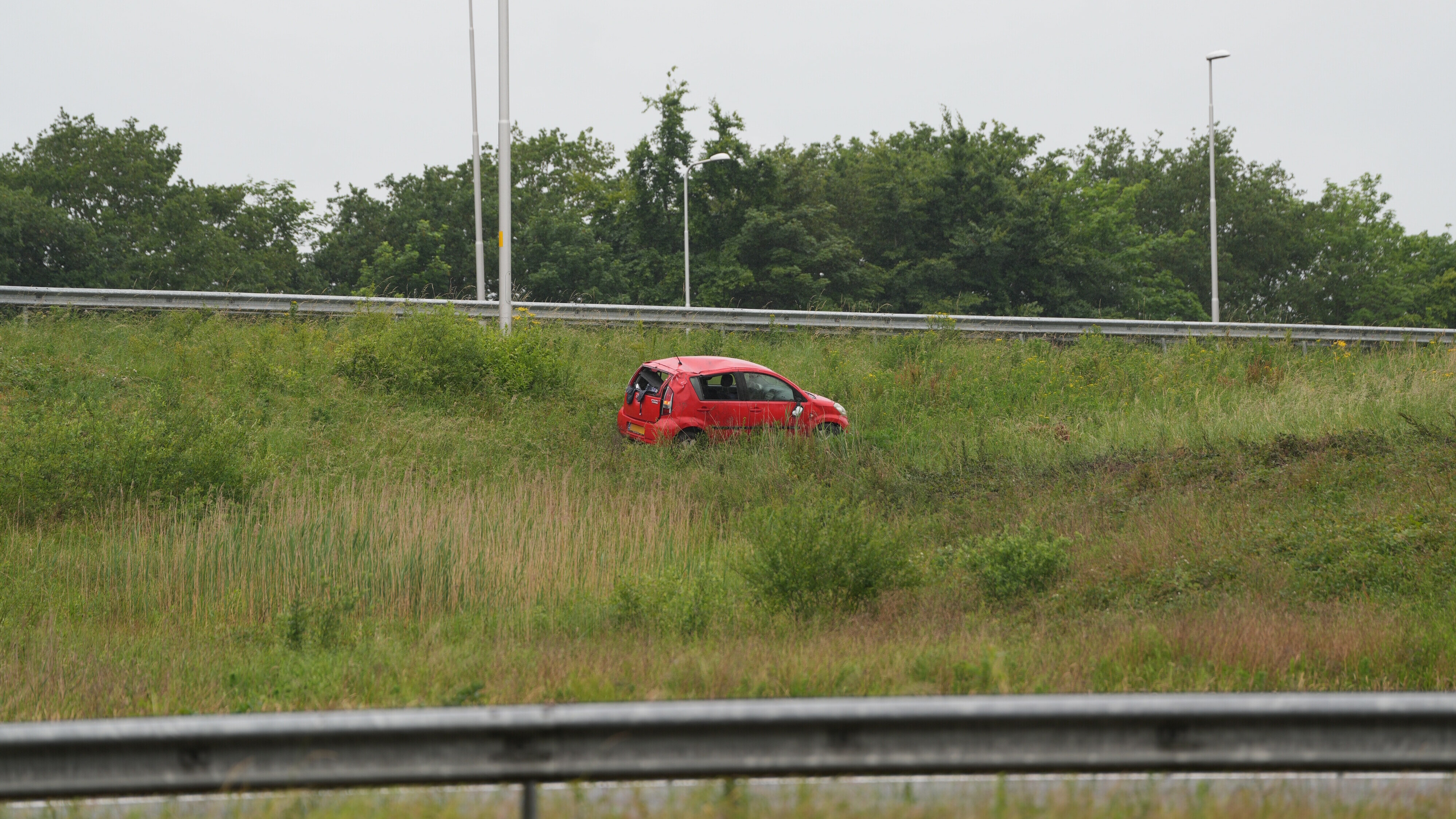 Vanochtend is er bij het knooppunt Landhorst naar de A32 richting Heerenveen een auto over de kop geslagen. De auto gleed weg en is uiteindelijk in de berm tot stilstand gekomen.