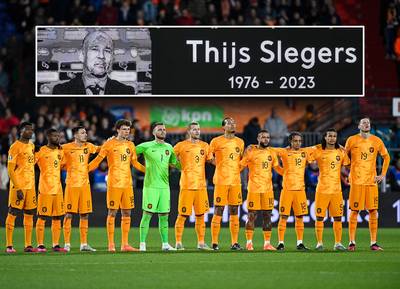 De EK-kwalificatiewedstrijd tussen Nederland en Gibraltar is voorafgegaan door een schitterend eerbetoon aan Thijs Slegers. In de Kuip bleef het een minuut stil ter nagedachtenis aan de overleden perschef van PSV. Slegers overleed aan de gevolgen van leukemie.