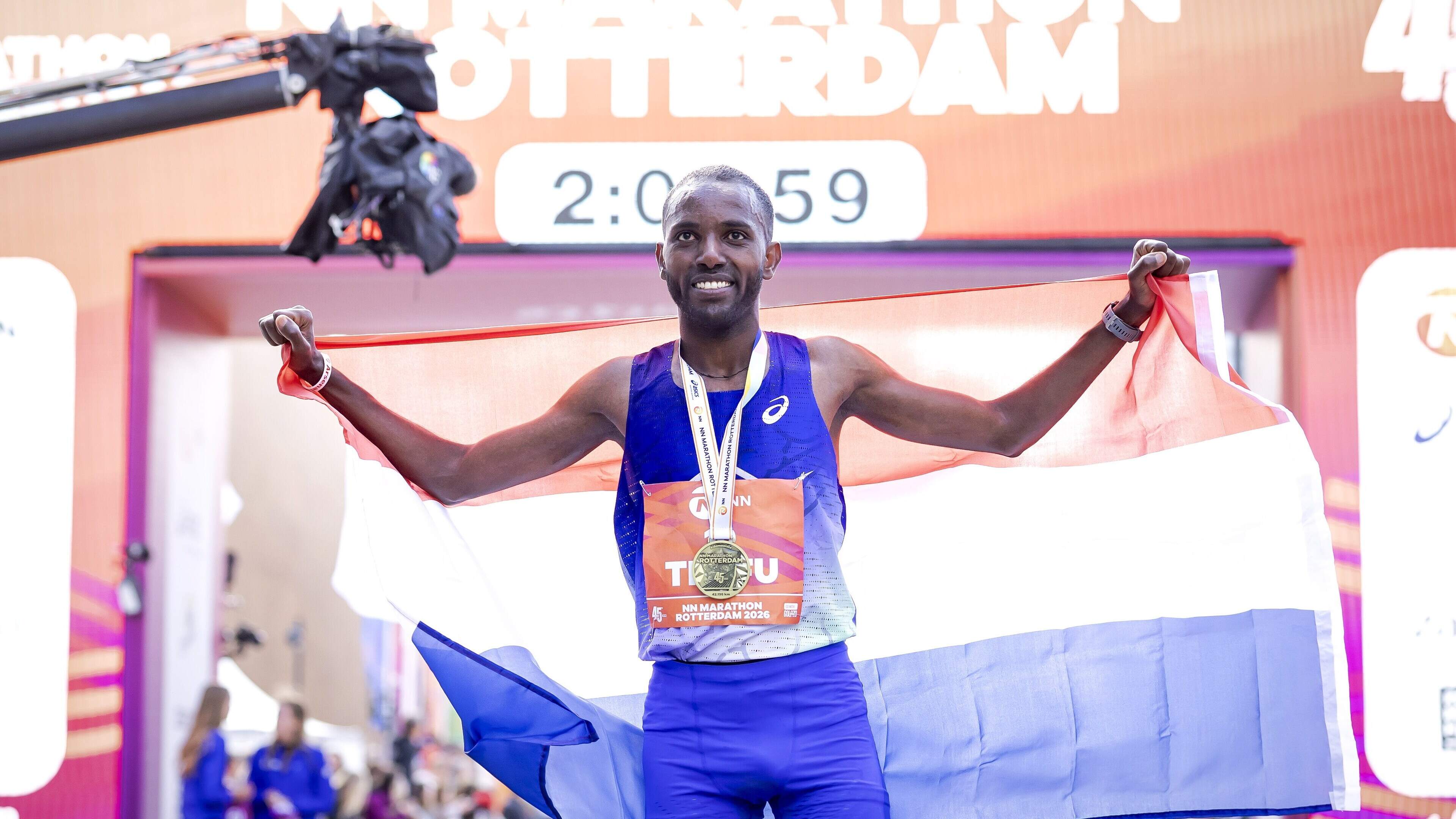 Hardloopsensatie Filmon Tesfu pakt eerste Nederlandse marathontitel