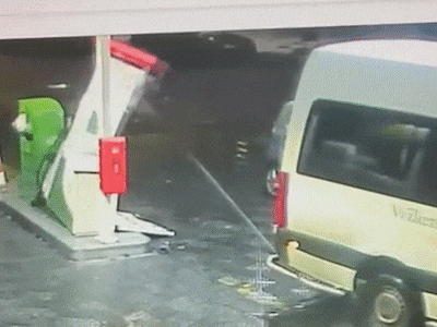 Een bestuurder van een witte taxibus vergat maandagochtend bij een tankstation aan de A2 bij Nieuwegein na het tanken de benzineslang af te koppelen. Hij reed weg, trok de pomp mee waarna de installatie ontplofte.