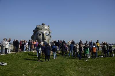 Ruim tachtig Nijmegenaren hebben zondagochtend een proost uitgebracht bij Het Gezicht van Nijmegen. Deze grote replica van een Romeins masker mag op de huidige plek op eiland Veur-Lent blijven staan. Dat heeft de gemeenteraad deze week besloten.