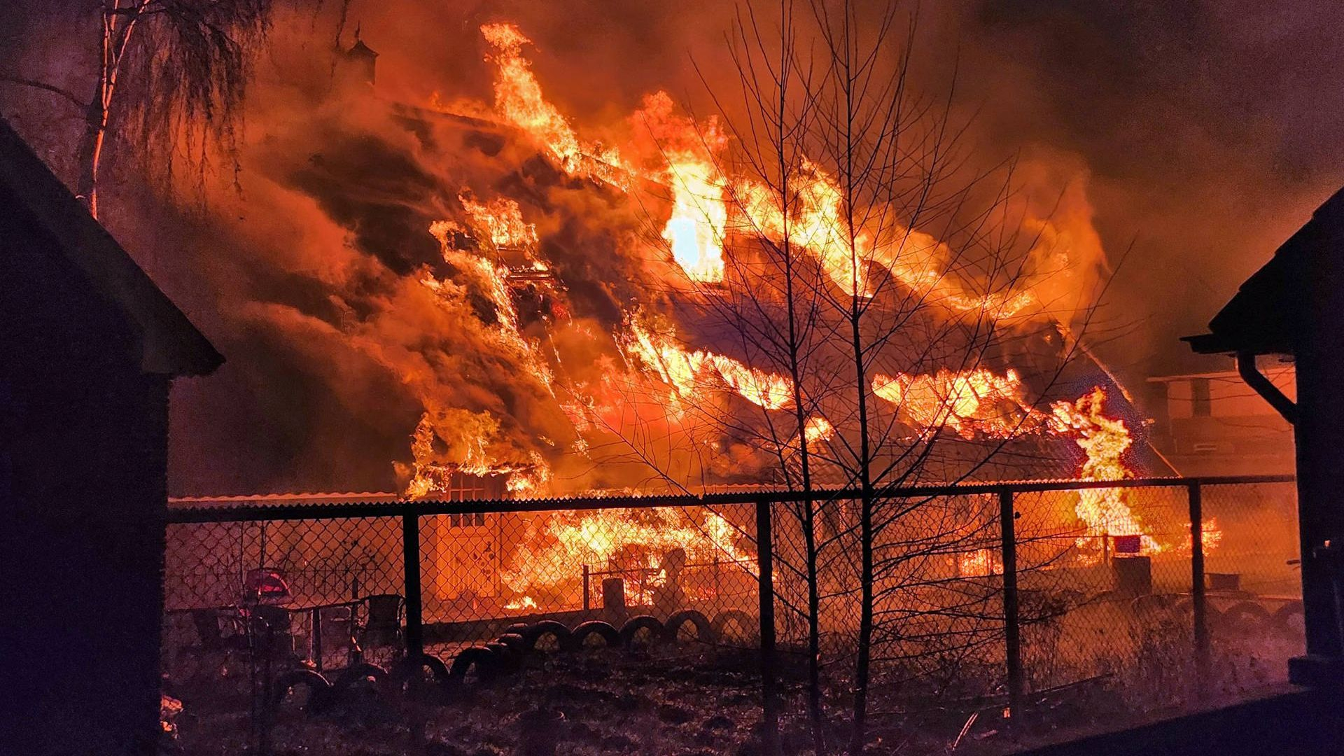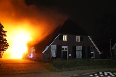 Vlammenzee verwoest monumentale (net verbouwde) woonboerderij met rieten dak: buurpanden behouden
