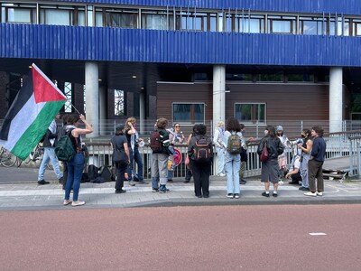 Pro-Palestina demonstranten eisten donderdag voor het politiebureau bij het station in Nijmegen de vrijlating van twee mede-actievoerders. Die werden woensdag aangehouden op de Radboud Universiteit. De studenten verwijten de politie excessief geweld te hebben gebruikt.