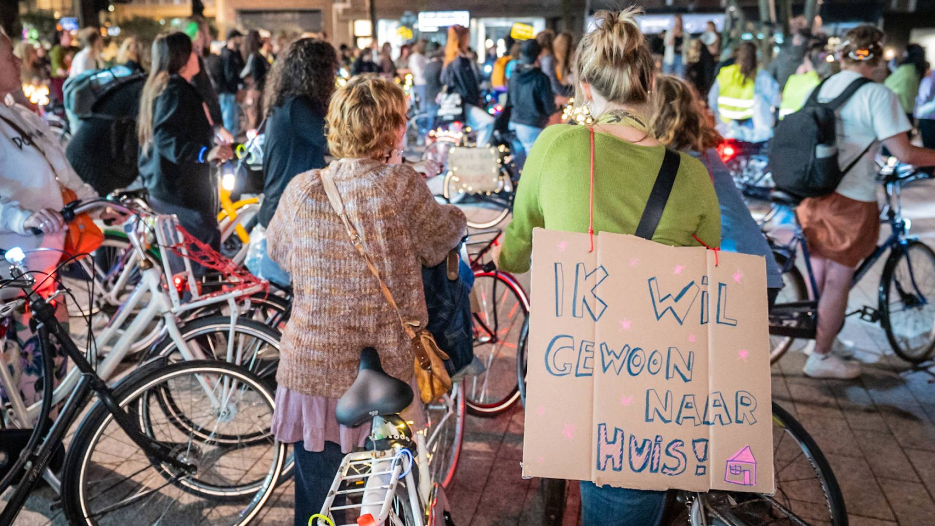 ‘Vrouwenhaat rot op, wij eisen de nacht op!’ Met dit motto verzamelden tientallen mensen zich voor een nachtelijke fietstocht door Nijmegen, bedoeld als protest tegen de onveiligheid die vrouwen en meisjes ’s nachts vaak ervaren wanneer zij alleen op straat zijn.