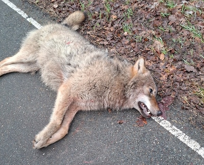 Dode wolf gevonden langs weg na vermoedelijke aanrijding