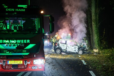 Bestuurder verliest macht over het stuur bij Ommen en rijdt tegen boom: auto vliegt in brand
