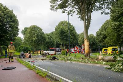 Dode bij zwaar ongeval in Oosterhout: auto botst tegen boom, bestuurder komt onder lijnbus