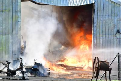vrijdag 7 juli 2023, 17:50 uurAan de Mikkeldonkweg in Oss heeft vrijdagmiddag een grote brand gewoed in een loods bij een boerenbedrijf. Het vuur brak rond vijf uur uit. Bij de brand is een van de loodsen op het terrein verwoest.