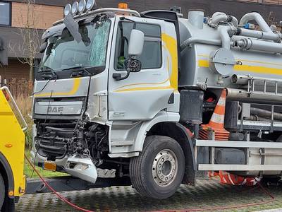Enorme ravage nadat twee vrachtwagens botsen, stoplichten liggen op de weg
