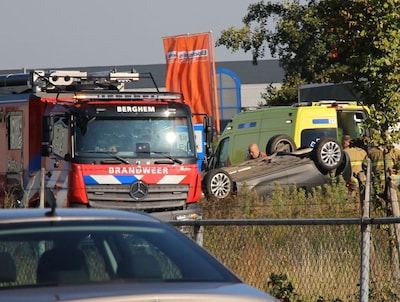 Auto belandt op de kop in middenberm na ongeluk in Oss