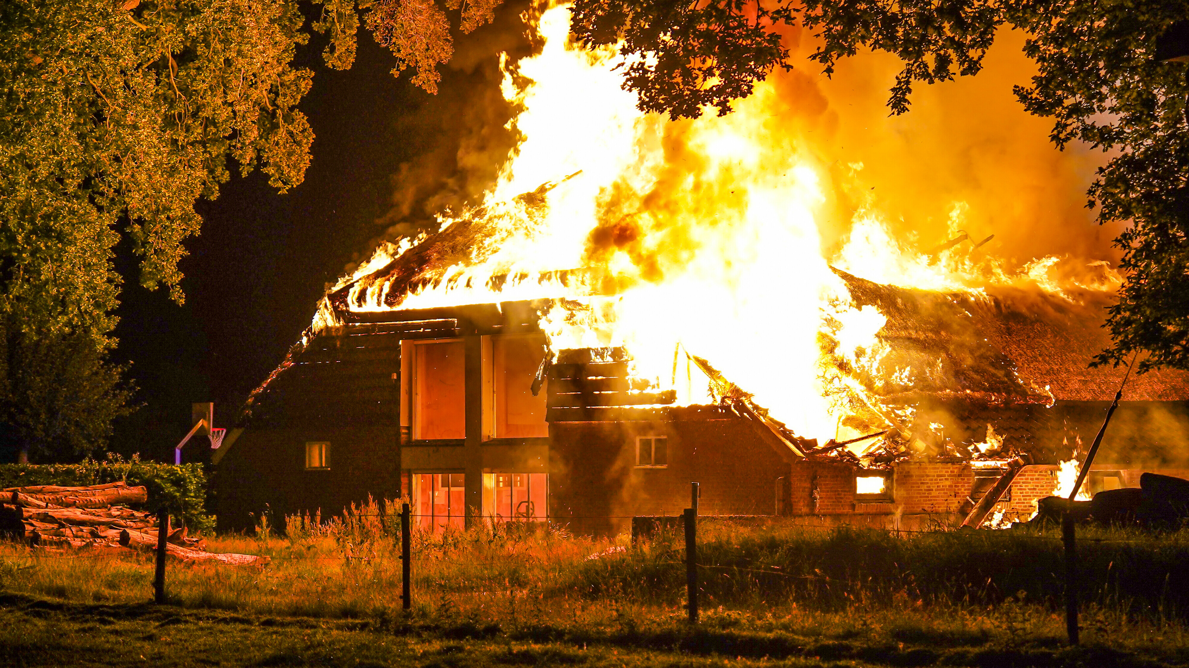 Grote brand verwoest rietgedekte schuur Cosis in Peest: bewoners geëvacueerd