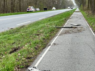 Automobilist rijdt verkeersbord uit de grond en belandt in sloot bij Putten