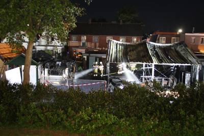 Raalter buurt beleeft angstige momenten: hevige nachtelijke brand legt schuren en caravan in de as