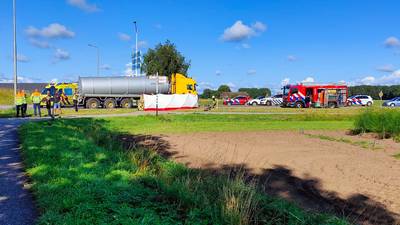 Motorrijder onder vrachtauto bij rotonde: N348 dicht