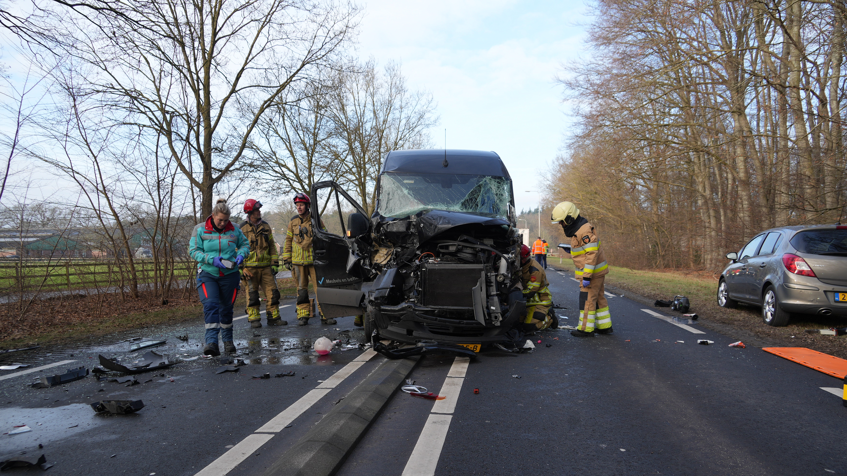 Een bestuurder en twee bijrijders van een busje zijn vrijdagmiddag bekneld geraakt bij een botsing bij Raalte. Ten minste een persoon is naar het ziekenhuis gebracht. Vanwege het ongeluk is de N35 tussen Heino en Raalte in beide richtingen afgesloten.