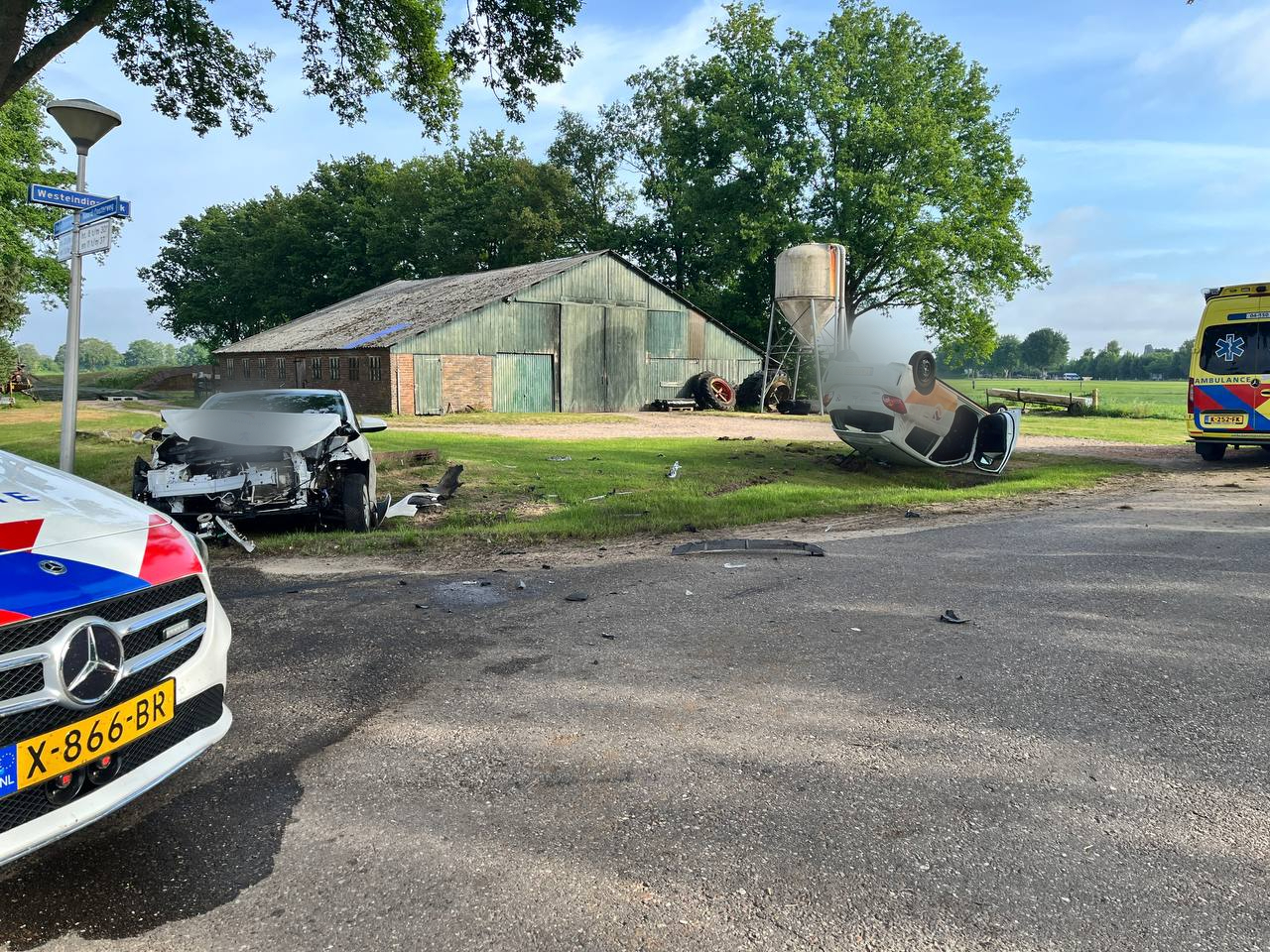 woensdag 21 mei 2025, 09:44 uurOp kruising van de Noord-Oosterweg en de Westeindigerdijk in Radewijk kwamen vanochtend twee auto's met elkaar in botsing. Na de crash kwam een van de auto's op de kop terecht.
