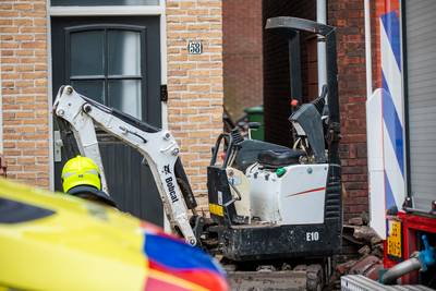 Man met minigraafmachine komt met voet vast te zitten in brandgang
