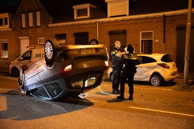 Auto belandt ondersteboven op wegdek bij botsing in Roosendaal